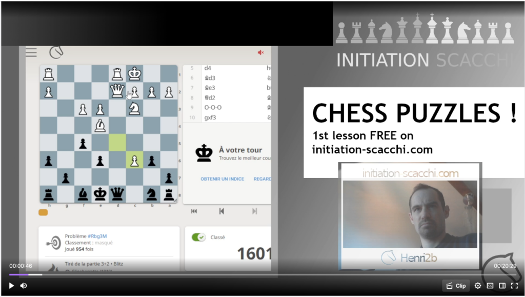 Régulièrement, je diffuse des tournois ARENA en blitz ou rapide, et des exercices (chess puzzles) sur ma chaîne Twitch.